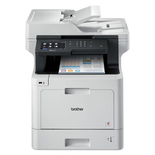 The Brother MFC-L8900CDW color laser All-in-One is ideal for offices and small workgroups with higher print volumes. Super high-yield 6,500-page replacement cartridges (approximate yield based on ISO/IEC 19798) deliver low cost, business quality output. Print/copy up to 33ppm. 5.0" touchscreen display. Automatic duplex print/scan/copy/fax. 70-page capacity auto document feeder. Legal-size scan glass. Machine Functions: Print; Copy; Scan; Fax; Printer Type: Laser; Maximum Print Speed (Black): 33 ppm; Maximum Print Speed (Color): 33 ppm. It compatible with TN436BK; TN436C; TN436M; TN436Y; TN433BK; TN433C; TN433M; TN433Y; TN431BK; TN431C; TN431M; TN431Y; DR431CL; WT320CL; BU330CL; LT330CL; LT340CL; CH1000.